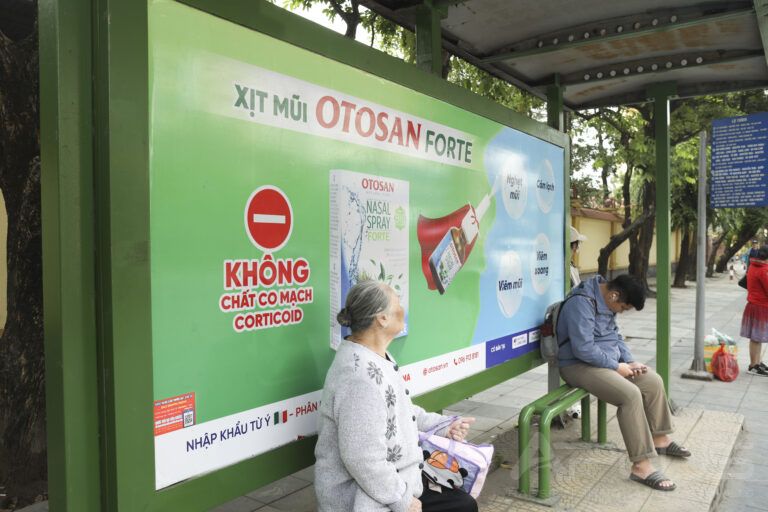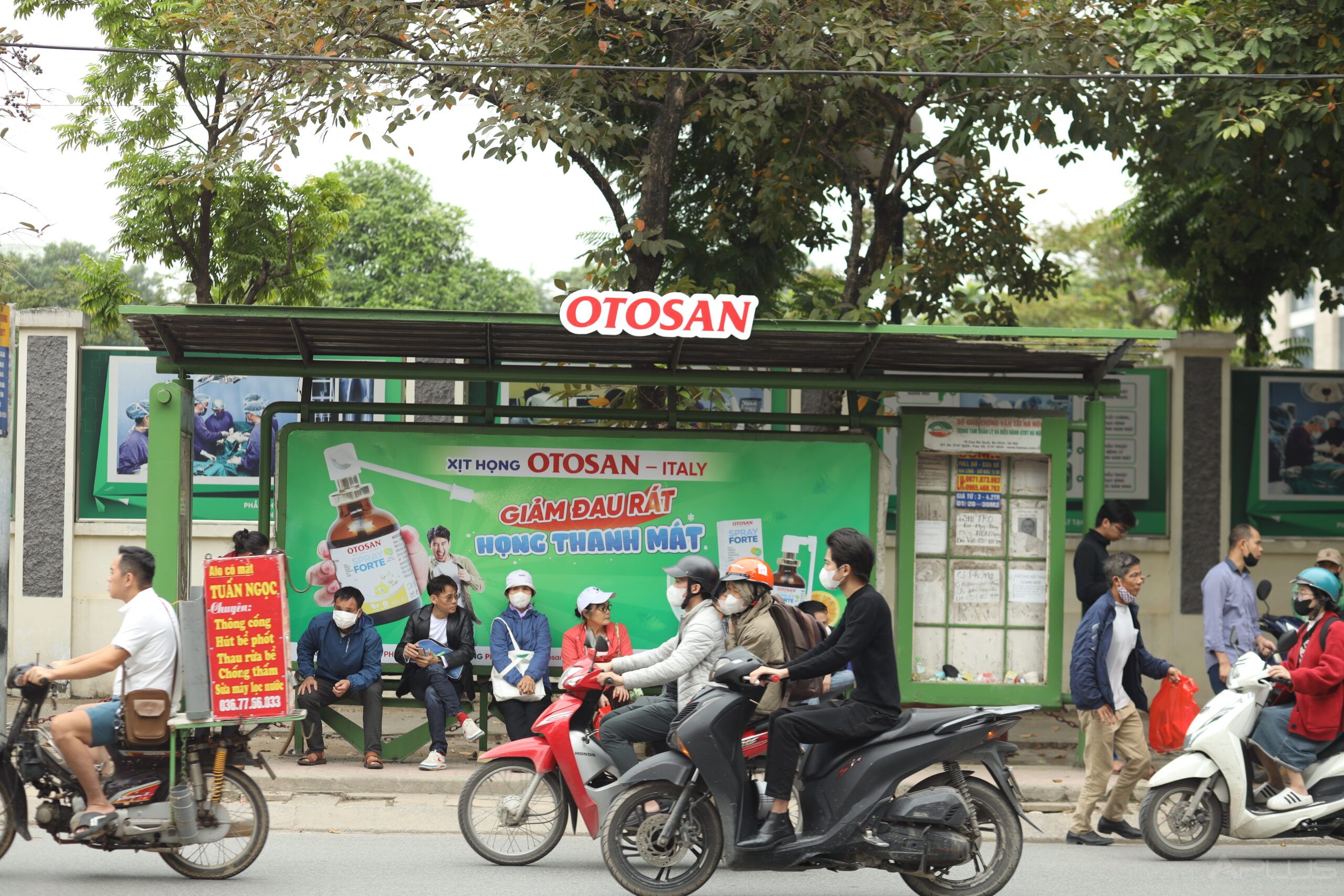 OTOSAN lựa chọn Bus Stop OOH nhằm đưa giải pháp giảm đau rát họng, thanh mát cổ họng tiếp cận trực tiếp nhóm người thường xuyên gặp các vấn đề về đường hô hấp như: người trung niên, người lao động, người di chuyển nhiều ngoài trời.